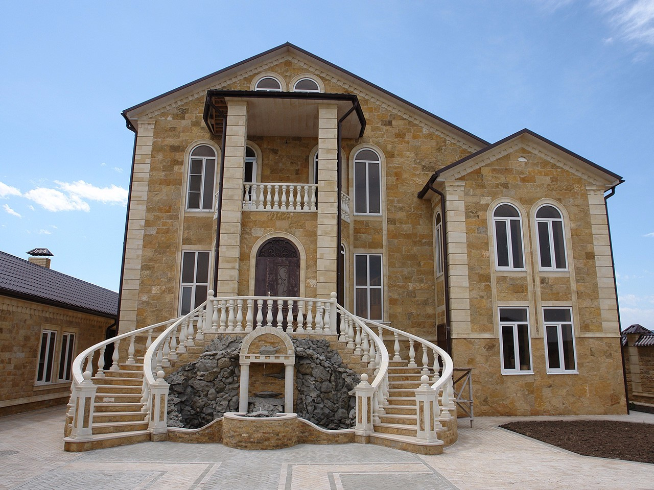 Фасад – наружная лицевая сторона здания. Формы, пропорции, декор фасада определяются назначением архитектурного сооружения, его конструктивными особенностями, стилистическим решением его архитектурного образа. Внешние стены любого здания требуют отделки. Это создаёт привлекательность любого фасада здания, а также придаёт оригинальность дому и подчёркивает изысканный вкус владельца. Облицовка натуральным камнем возможна как диким варианте камня так и в плитке, изготовленного из натурального сырья.