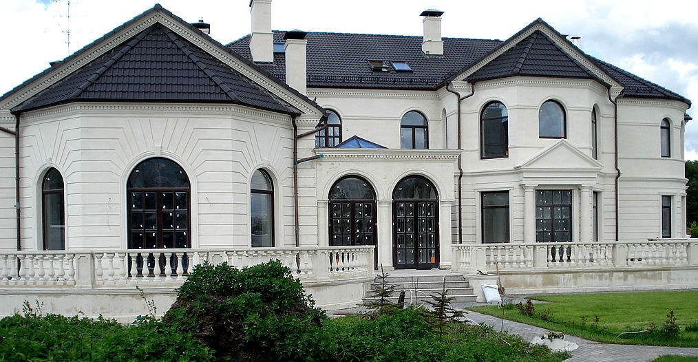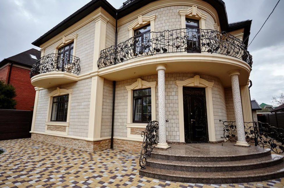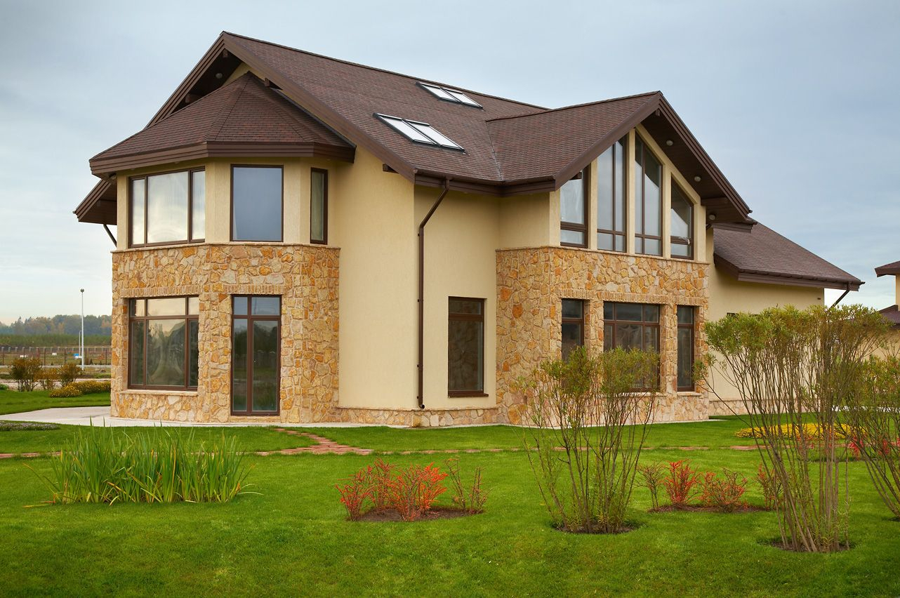 Облицовка фасада натуральным камнем придаёт оригинальности дому и подчёркивает изысканный вкус владельца