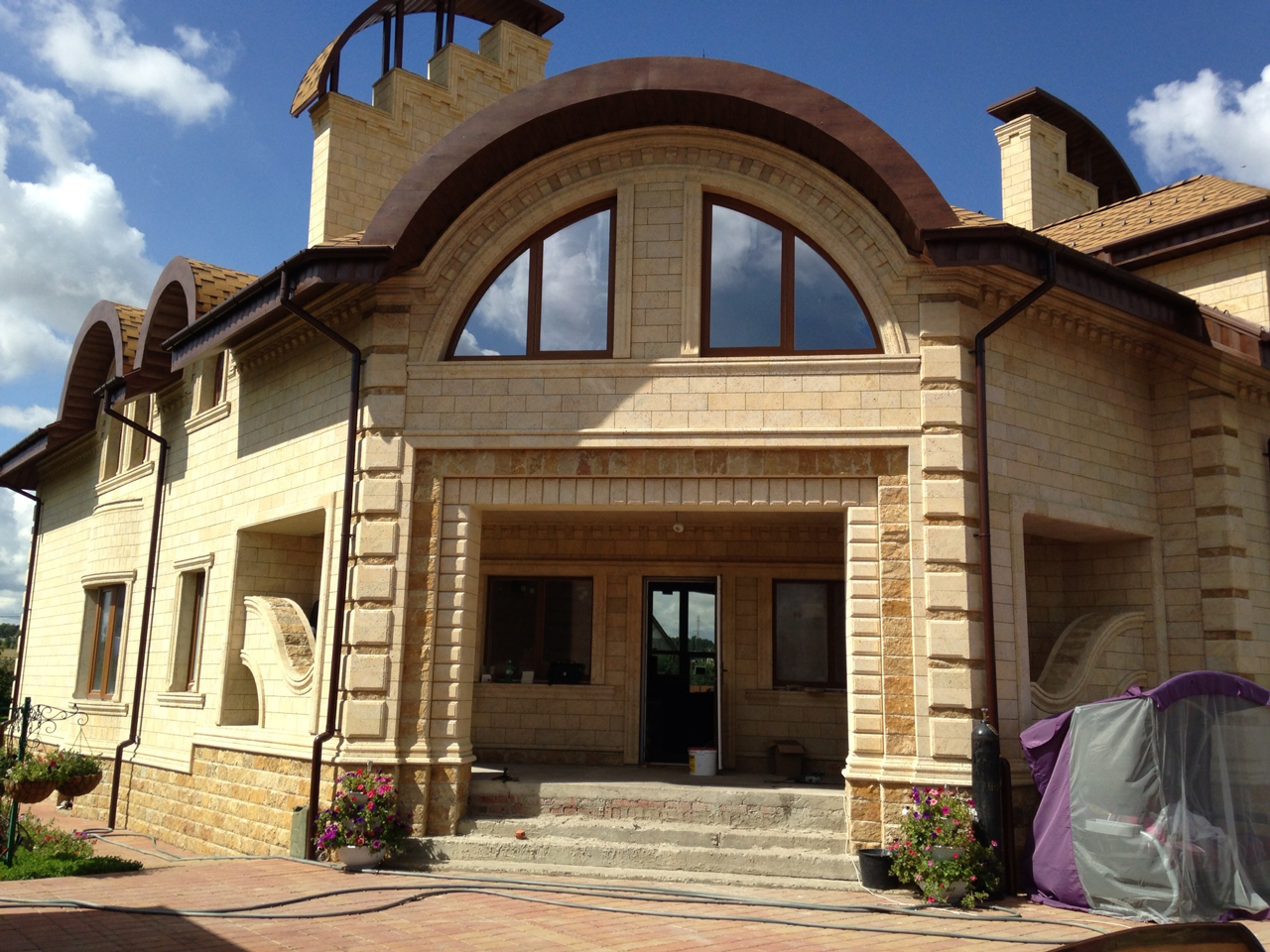 Советы по укладке фасадного камня от специалиста. Одна из ошибок в монтаже натурального камня неправильная подготовка стен под укладку камня. Эти нарушение играют плачевную роль в дальнейшем состоянии вашего фасада. Ведь мы знаем натуральный камень прочный и долговечный материал и его необходимо укладывать на такую же прочную основу. В зависимости от материала, из которого построен ваш дом будь то кирпич или блок зависит и подготовка. Как мы знаем кирпич бывает полнотелым и пустотелым или блоки и монтировать на такую основу нужно грамотно, так как карнизы из натурального камня имеют не малый вес. Как правило все карнизы монтируются на анкера и соответственно анкер должен быть прочно закреплён. При учтении всех этих особенностей подготовки вы получите достойный результат. В итоге это скажется на долговечности вашего фасада.